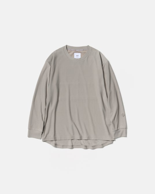 適度にゆとりのあるリラックスシルエットが特徴のロングスリーブTシャツ。糸の段階でATY加工(かさ高性と弾力性を向上させる加工)を施し、ポリエステルの耐久性を持ちながら、コットンのようなナチュラルな風合いを実現しました。背中には通気性を高めるベンチレーションを配置し、機能性とデザイン性を両立。さらに、吸水速乾性や消臭機能も備えており、快適な着心地を提供します。