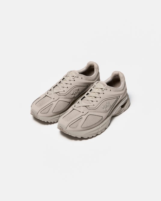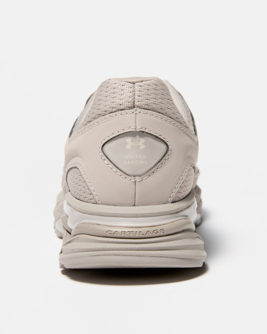 2009年に発売されたアンダーアーマー初のシューズをアップデートして展開した「UA HOVRアパリション レトロ フューチャー」をベースに、素材やパーツ色などをワントーンに別注。本格的なランニングシューズの機能とともに、ソフトな「HOVR※」クッショニングでアップデートすることで、一日中快適な履き心地を実現しました。ヒールにコラボロゴをプリント入り。