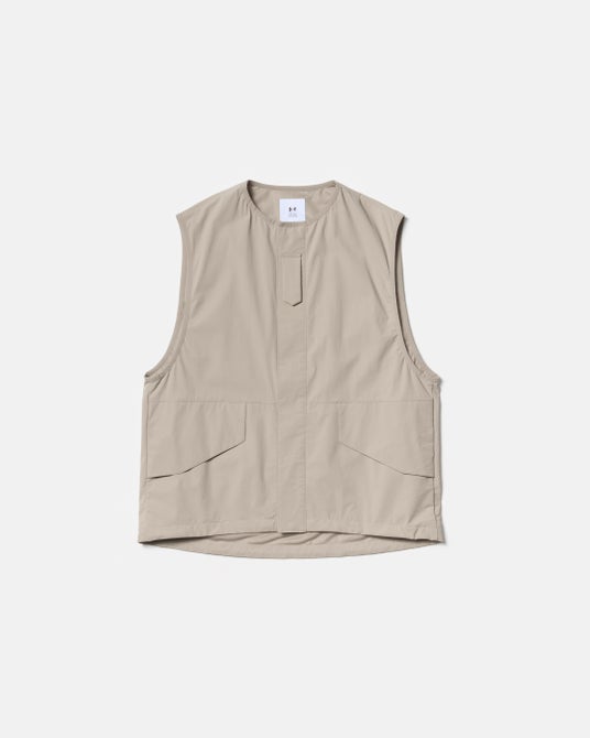 アンダーアーマーオリジナルの「STORM※」加工による撥水機能を施し、ミリタリー要素を取り入れたベスト。ストレッチ性に優れたファブリックで、快適な着心地を実現しました。背面にはベンチレーションヨークを配置し、通気性を確保。ヘムにはドローコードを内蔵し、シルエットに変化をつけることが可能です。前裾にはコラボロゴ入りのシリコンネームをあしらい、細部までこだわりました。