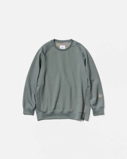 アンダーアーマー独自のテクノロジー「RUSH※」を背面メッシュにプリントし、機能性とソフトな風合いを兼ね備えたクルーネックトップス。適度なゆとりを持たせたシルエットに仕上げ、背中には通気性を高めるベンチレーションを配置。身頃脇のファスナー引手やスピンドル先端にはオリジナルのメタルパーツを採用し、コラボロゴを刻印。袖口にはコラボロゴ入りのシリコンネームを付け、ディテールにもこだわりを感じられるデザインに仕上げています。