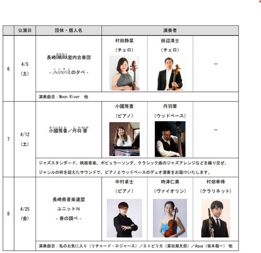 ※ 日程・出演者・演奏曲目は、都合により予告なく変更となる場合がございますので、予めご了承くだ