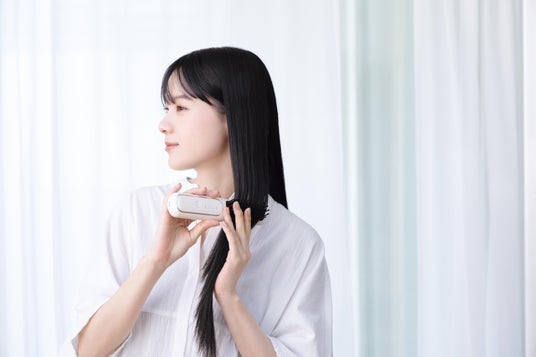 充電式コードレスだから、どこででもナチュラルなスタイリングが可能。ブラシ型の本体からはマイナスイオンも放出。髪にやさしく、ツヤのある髪に。