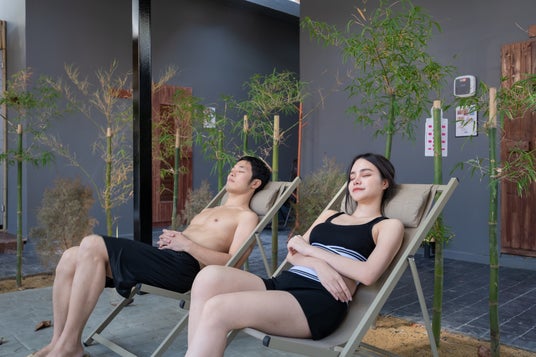 サウナエリアでの外気浴。竹に包まれながらの外気浴です。
