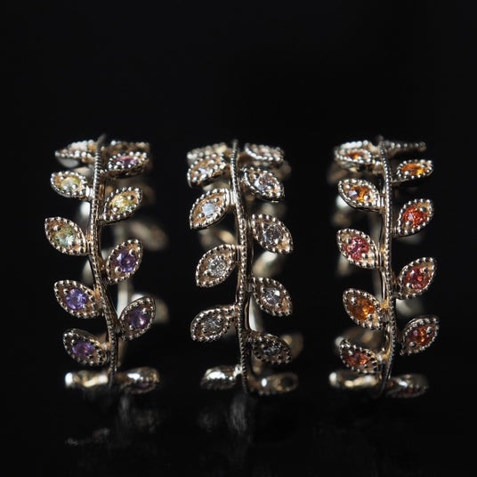 1月のトランクショーで発表された『ボタニカル』シリーズ。自然の造形美である植物をそのまま指に宿したような、しなやかでナチュラルなデザイン。大変ご好評につき、2月も新たなデザインでお持ちいたします。規則性がないように見えながら、実は計算されたバランスで配置されたカラーストーンが、自然の美しさを最大限に引き出します。