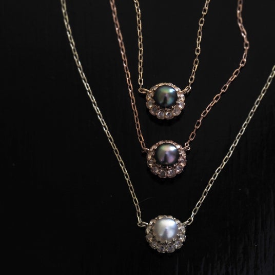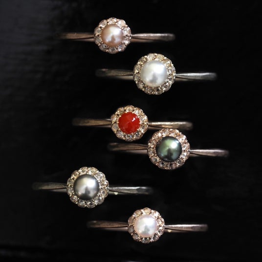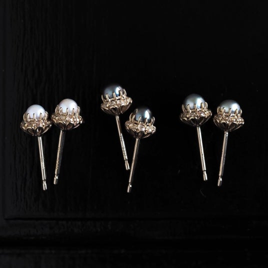 今回は、3.5mmと4.0mmサイズの真珠や珊瑚を、極小 1.2mmローズカットで取り巻いた繊細なデザインにアップデート。有機宝石ならではの、内側から滲み出るような色艶を、どこか懐かしいクラシカルな雰囲気で纏っていただけます。
