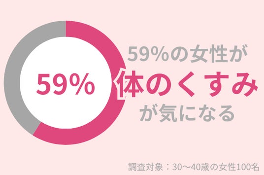 調査の結果、30代女性のうち、59%の方が体のくすみが気になっているとわかりました。くすみや黒ずみが気になる原因で多いのは、古い角質やメラニン色素を含んだ角質が肌の上に留まっているからです。