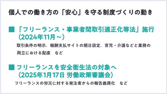 個人としての働き方が増えていく中で、「安心」を守る制度づくりが活発化