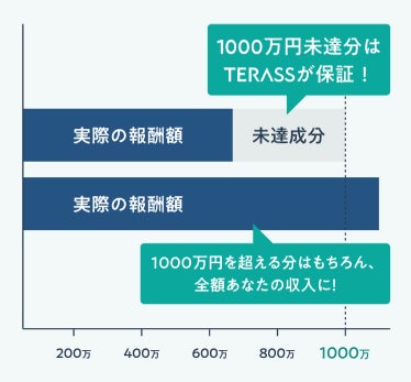 参画から12か月間の報酬額が1,000万円を下回った場合にTERASSが補填