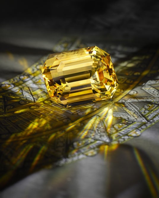 建築的な素晴らしさに感嘆する、この類い稀な創造性の証は、鉄道の驚異を実現させたエネルギーと近代的な金属の偉大な発見との類似点を描き出すために、内側と外側の洗練された仕組みを駆使したもの。織り合わせたように施されたダイヤモンドの中央にセットされた50.01カラットの稀少なオクタゴナルステップカットのスリランカ産イエローサファイアは、太陽のような黄金色の純粋なきらめきを放ち、このネックレスの芸術性を引き立てます。このサファイアの下に優美にあしらわれ、ダイヤモンドをセットしたV字型デザインパターンの中に佇む3.07カラットのLV モノグラムスターカットダイヤモンドは、「Awakened Hands」の殿堂へのオマージュ。ラグジュアリーの真髄と、その壮大な複雑性を強調する「Vision」は、シェブロン・モチーフが織物のようにネックレス、ブレスレット、イヤリング、リングを美しく彩り、啓蒙された国のレガシーを讃えます。