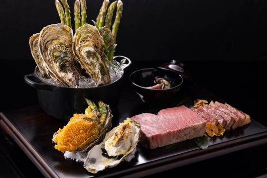 濃厚な味わいと大きな身を誇る三陸産の牡蠣と、日本最高級として知られる黒毛和牛のいわて牛を使用した、三陸の豊かな自然が生んだ食材をご堪能いただけるコース。コンソメスープや鉄板焼など、異なる調理法や食材を組み合わせることで、素材の持つ可能性を引き出します。