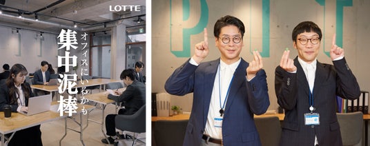 株式会社ロッテ(本社:東京都新宿区)は、2023年以降急速に高まっている日本企業の出社回帰の流れを受け、コロナ禍で普及したリモートワークから一転して、慣れないオフィス勤務での「集中」に関する実態を明らかにするために、「全国一斉オフィス集中調査」を実施しました。調査にて日本全国のオフィスワーカーからお寄せいただいた、オフィスでの集中がしづらいと感じた際のエピソードをもとに、お笑いコンビ・男性ブランコのお二人が企画・出演したWeb動画「集中泥棒」を制作。2月5日(水)より、ロッテ公式YouTubeにて「ちゃちゃっと」篇、「カタカタ」篇の2篇を公開いたします。