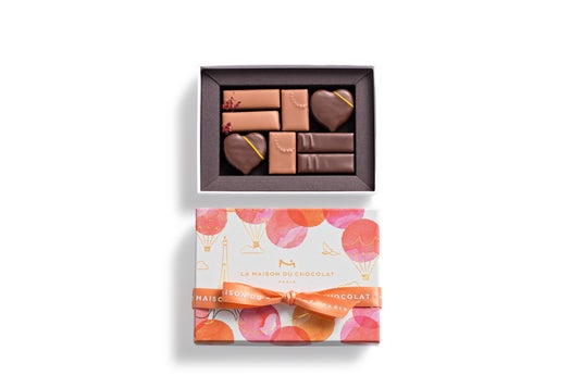 「細やかな心遣い」を表す、贈り物に最適なメゾンの代表的なボンボン・ドゥ・ショコラ6粒の詰合せ。ミルク、ダークのガナッシュやプラリネなど、数あるボンボン・ドゥ・ショコラの中でも特に人気の高いものをセレクトした詰合せです。初めてメゾンのショコラを召し上がる方にも、リピーターの方にも満足いただけるアイコニックなレシピ。