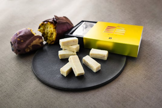 焼き芋とホワイトチョコの生チョコレート。宮崎県産の焼き芋ペーストをふんだんに使用。さつまいもの優しい甘さを活かすため、すっきりとした味わいのホワイトチョコレートと合わせました。仕上げにさつまいもパウダーを振り、ほっくり感を楽しんでいただけるようにしました。