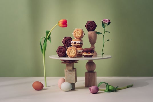 ラングドシャクッキーをわずか7秒でチューリップへと形作る独自の製法や、なめらかな口どけのままバラの形にクリームを絞る精巧な技術があって初めて可能になった、世界中で当店だけの一品です。