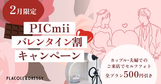 「PLACOLE & DRESSY」ブランドを展開する、冒険社プラコレ(本社:神奈川県鎌倉市、代表取締役CEO:武藤功樹)は、『DRESSY ROOM YOKOHAMA/NAGOYA』で取り扱うセルフ写真館「PICmii」に2月新たなキャンペーンを開始することをお知らせいたします。