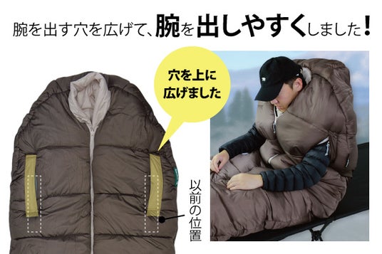 お客様のご意見から腕を出す穴を大きく改良しました。