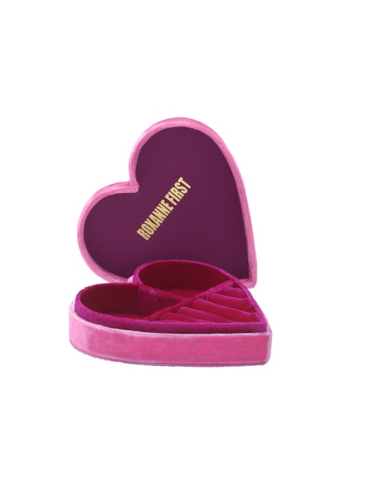 ハート型のシルエットと鮮やかなベルベット素材の「VELVET HEART JEWELLERY BOX」。ロマンティックなデザインが、毎日のジュエリー選びを特別な時間に。