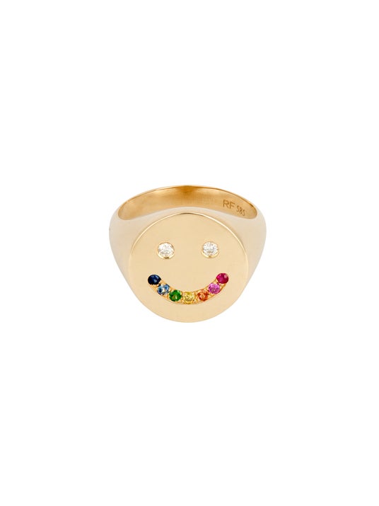 RAINBOW SAPPHIRE & DIAMOND HAPPY シグネットリング(14Kイエローゴールド、ダイヤモンド、サファイア)¥396,000