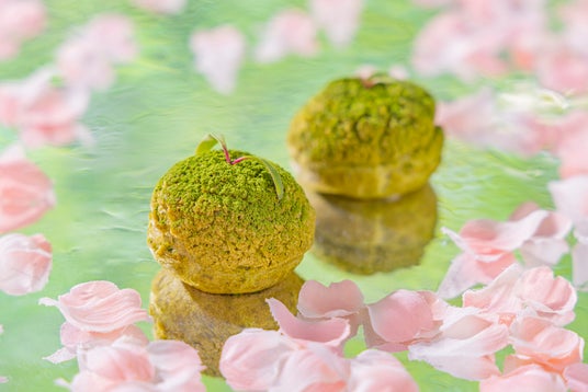 コケ抹茶シュー:愛らしい苔玉をイメージした抹茶のシュークリーム