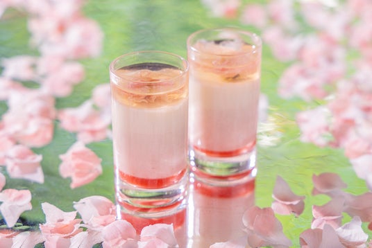 桜ブロッサム:爽やかな柚子とパイナップルを合わせた上品な味わいのトニックウォーターに、ノンアルコールの白ワインと桜シロップをフロート