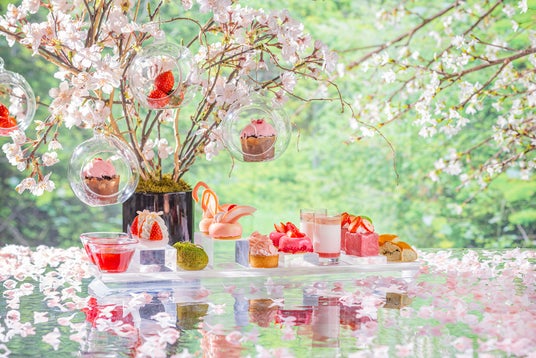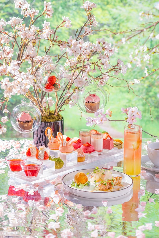 「川辺や湖のほとりに咲く、緑との調和が美しい桜の木。揺れる水面に浮かんだ桜の花びら。」そんな春ならではの情景をテーマに、優しい味わいとやわらかな彩りでまとめたアフタヌーンティーに仕上げました。8種のスイーツには、桜といちごの味わいをメインに、湖に浮かぶスワンを形作ったムースや、木々が芽吹く様子をイメージした抹茶シューなど、随所に春の香りを感じていただける内容でご用意しています。プレミアムプランに含まれるのは、テーブルを一気に華やかなお花見モードにしてくれるさくらツリー。ディナータイムは、夜桜気分でハイティーをお楽しみください。