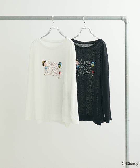 そのほか、「ピノキオ」が妖精にかけられた魔法を連想させるラメTシャツや、お茶目な表情を見せる「フィガロ」と「クレオ」のバックプリントTシャツなどをご用意いたしました。
