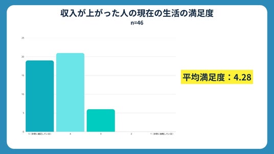 「収入が上がった」と回答した人の現在の生活への満足度(n=46)