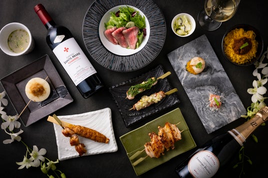 日本三大地鶏の比内地鶏や名古屋コーチンの食べ比べ、那須御養卵を使用した鶏そぼろ丼など鶏肉の深い味わいとソムリエ厳選ワインのペアリングコ―ス。