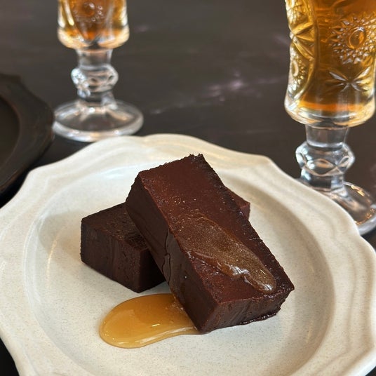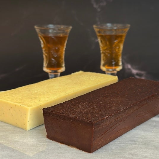 また、2種類のテリーヌにはウイスキーの香りをそのまま閉じ込めた琥珀色のソースが付属しています。まずはテリーヌそのもののお味を楽しんでいただき、その後ウイスキーソースをかけてお召し上がりください。芳醇なウイスキーの風味をまとった極上のテリーヌへと変貌を遂げます。甘いものが苦手な方にもおすすめのスイーツです。