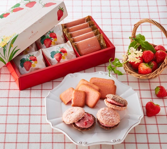 神戸生まれのパティスリー「アンテノール」では、甘酸っぱい苺のおいしさをとじこめた苺の焼き菓子を2月15日(土)から期間限定販売いたします。春の訪れを感じるさわやかな苺のイラストパッケージは、ホワイトデーのお返しや春のお祝いギフトにおすすめです。(オンラインショップでも2月15日(土)から発売いたします)