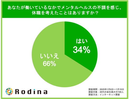 復職・就職を支援し、リワーク事業を展開する株式会社Rodina(本社:広島県広島市、代表取締役:山田 康輔)は、全国の20代の会社員100名を対象とし、働き方に関する調査を実施いたしました。