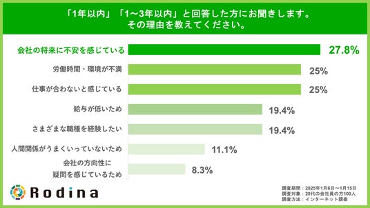 ・現在勤めている企業で勤務する期間を「1年以内」「1~3年以内」と回答した方の最多理由は「会社の将来が不安」