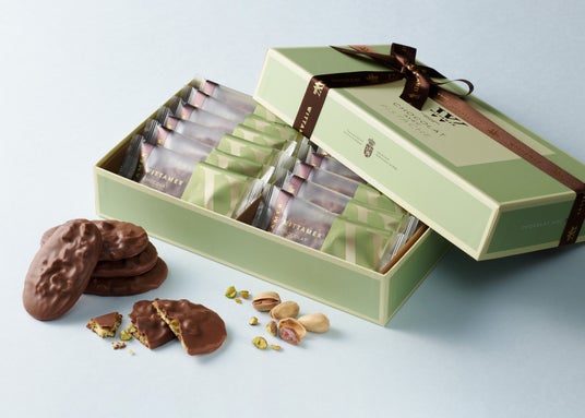 そのサクサクほろほろとした食感はそのままに、ピスタチオペーストを練り込んだサブレにピスタチオをのせ、ミルクチョコレートで包んだ “ ピスタチオ・ショコラ ” を今年もご用意しました。マカダミアナッツとは一味違う、ピスタチオのくせになる香ばしさとサクサクのサブレ、まろやかなミルクチョコレートが奏でるハーモニーが広がります。