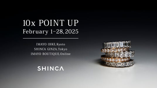 株式会社 今与(本社:京都市中京区、代表取締役社長:今西信隆)が製造・販売する、日本初のラボグロウンダイヤモンドジュエリーブランド「SHINCA(シンカ)」は、直営店または公式オンラインブティックで該当商品をご購入の会員様を対象に、「2025 EARLY SPRING ポイントアップキャンペーン」を、2月28日(金)までの期間限定で好評開催中です。