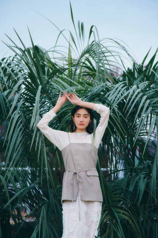 ジャケット(¥16,990)/キャミソール(¥8,690)/パンツ(¥10,990)/スカート(¥12,980)/イヤリング(¥3,590)/シューズ(¥11,990)