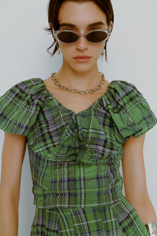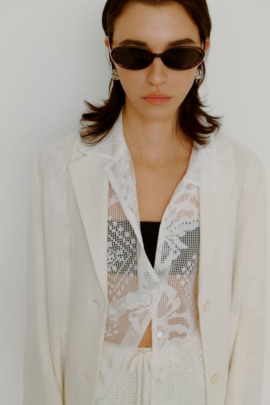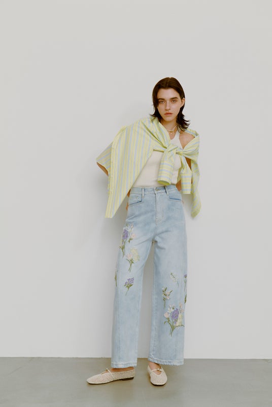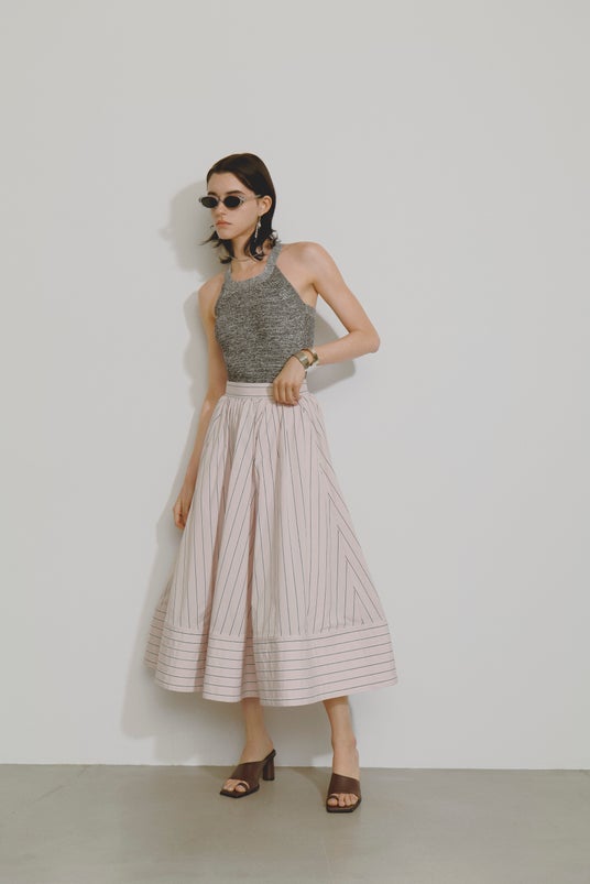 白を基調とした軽やかな素材とエアリーなシルエットに春の気分を感じる今シーズンは、洗練されたレースやカットワークで女性らしい爽やかなムードに大人な洗練さを加えたStripeを都会的な解釈で表現し、スカーフやアクセサリーで遊びをプラスしたRelax styleを提案。