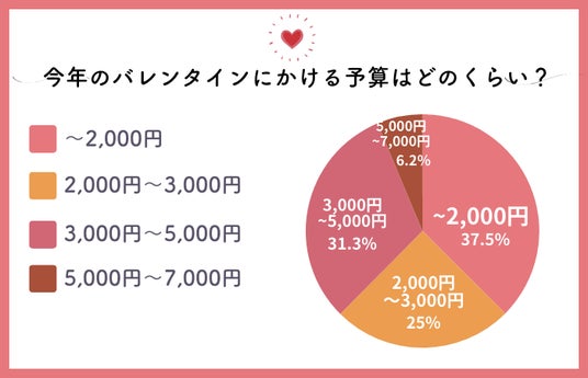 3.で「購入する」と答えた人を対象に、「購入するチョコレートの予算」を質問したところ、「~2,000円」と「3,000円~5,000円」が30%を超えました。