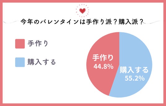 1.で「はい」と答えた人を対象に、「チョコレートは購入しますか?手作りですか?」と質問したところ、「購入する」は55.2%、「手作り」は44.8%となりました。