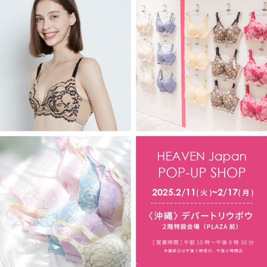 一人ひとりの女性の心と体に寄り添う「適正下着(R)」の開発から販売までを行う株式会社HEAVEN Japan(所在地:大阪府河内長野市、代表取締役:松田崇)は2月11日(火)~2月17日(月)の期間中、デパートリウボウにて、適正下着のフィッティング体験ができるポップアップショップを開催します。