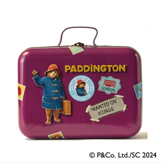 子どもから大人まで、幅広い世代に愛される英国の人気キャラクター、パディントン。小さなトランクの中には彼の大好物であるマーマレードを練り込んだチョコレートビスケットが詰まっています。トランク型の缶は、食べ終わった後も小物入れや宝箱として使えてプレゼントにも最適です。 一缶 ¥3,456