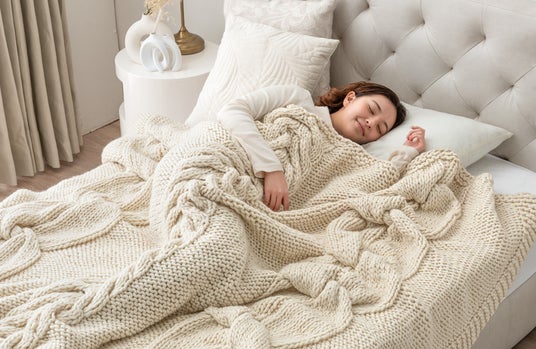 メリノウール100%使用のケーブルニットデザインブランケット『眠るセーター』