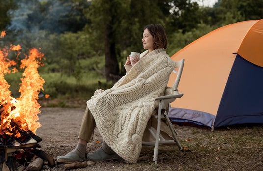 「ケーブルニットブランケット」とは北欧の伝統的なセーターに見られる編み模様を取り入れた大判のブランケットです。縄のように編み込まれた立体的な模様が生み出す空気の層によって優れた保温性を発揮し、特に冬の厳しい寒さが続く北欧では実用性とデザイン性を兼ね備えたアイテムとして長年にわたり重宝されています。