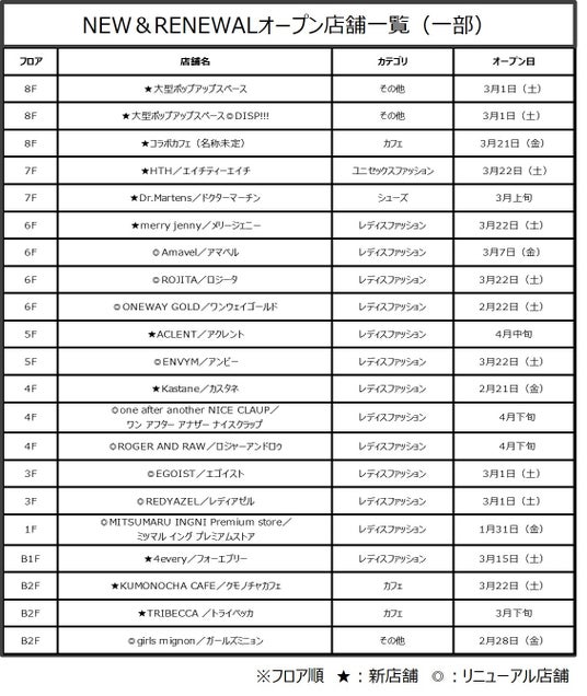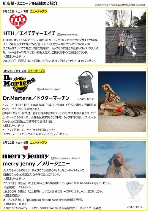 SHIBUYA109 春のニューオープン&リニューアルオープンのお知らせ