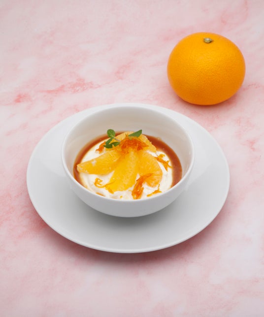 フォション ル・カフェ <カフェ>本館ガレリア1Fマスカルポーネと生クリームのムースに、みずみずしいはっさくの果肉とはっさくを使用したカラメルソースを合わせました。