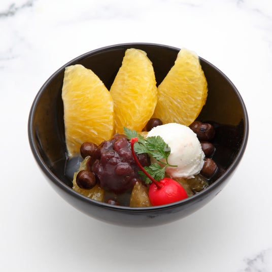 レストランローズ <ファミリーレストラン>本館B2紀の川市のはっさくをたっぷり使ったクリームあんみつ。