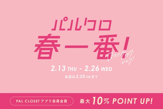 2月13日~2月26日(お店は2月25日まで)の期間、パルグループの各店舗&パルクローゼットオンラインストアにて『パルクロ春一番』を開催いたします。