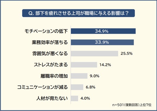 部下を疲れさせる上司が職場に与える影響は「モチベーションの低下」