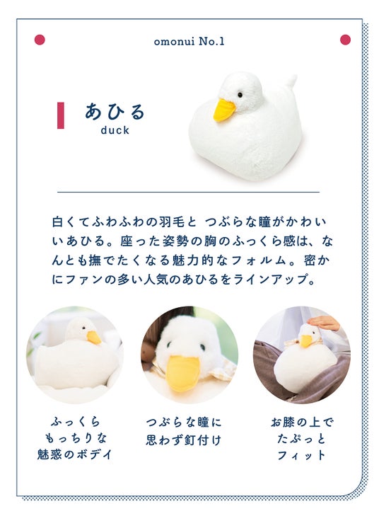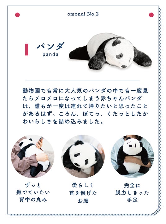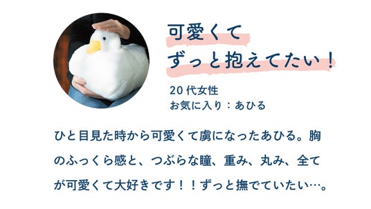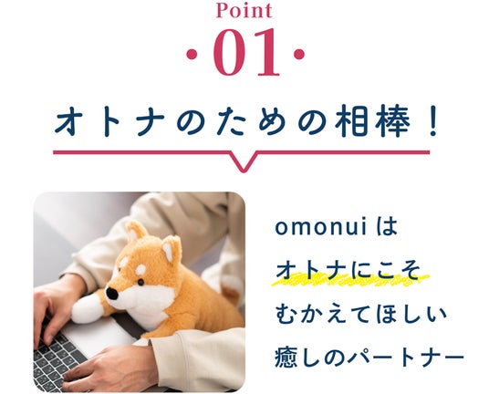 柔らかなぬいぐるみを撫でると、分泌される幸せホルモン『オキシトシン』。 ストレスの多い大人にこそ幸せホルモンのリラックス効果を感じてもらいたい!でも、おもちゃのイメージがあるぬいぐるみを持つことに、ためらいのあるオトナの方もいます。 そこで、重さをオトナにちょうどいい2kgにすることで、本物の動物を抱いたような感覚が生まれる『オトナのため』『オトナが欲しい』癒しのパートナーを作りました。