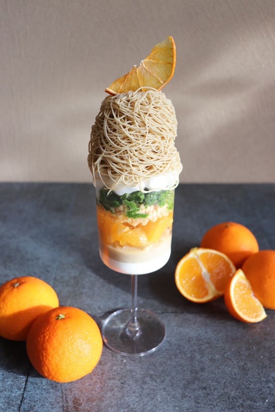 宮崎県えびの産和栗を使用したモンブランクリームの芳醇な甘さと「せとか」のさっぱりとした甘酸っぱさ、ジューシーな食感を愉しめる季節限定の一品。