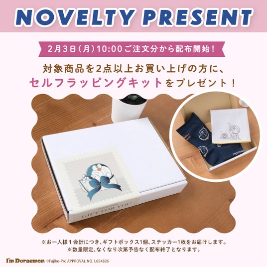 オンラインストアで対象のソックスや綿ハンカチを2点以上購入すると限定ノベルティをプレゼント!